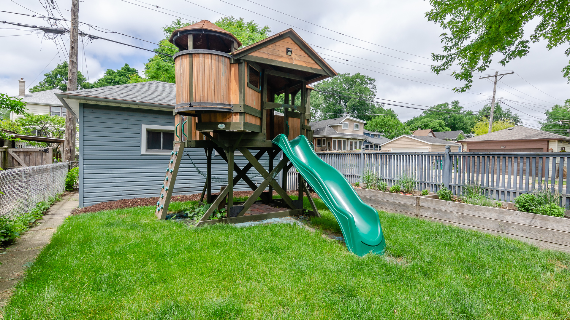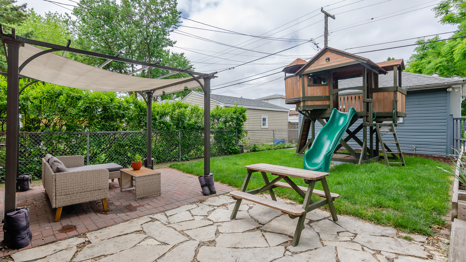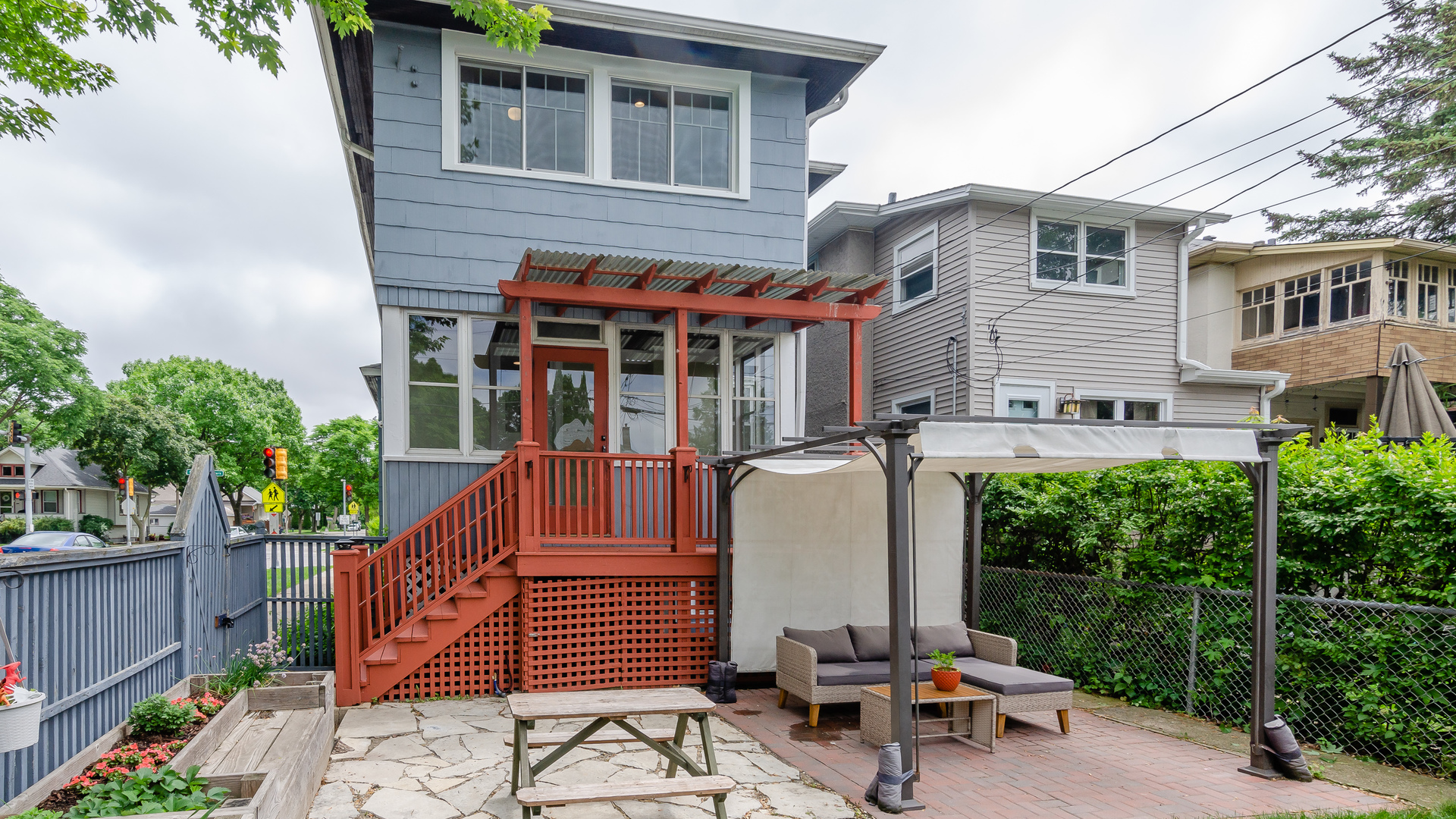 Three spacious bedrooms are on the second level, all with nice-size closets. The full bath has charming original features including a laundry chute, and has been updated. The basement features high ceilings and great flexible space for a rec room, office, work-out room, + tons of storage and laundry. The yard features a stone and brick patio with a pergola, perfect for summer BBQ’s. Raised bed gardens and fencing all around, make this a perfect space. Central A/C! Walk to schools, parks, CTA Blue line, Arts District shops, pool, library and more! List price: $399,000.  For interactive floorplan, visit: https://bit.ly/3xfkZEE