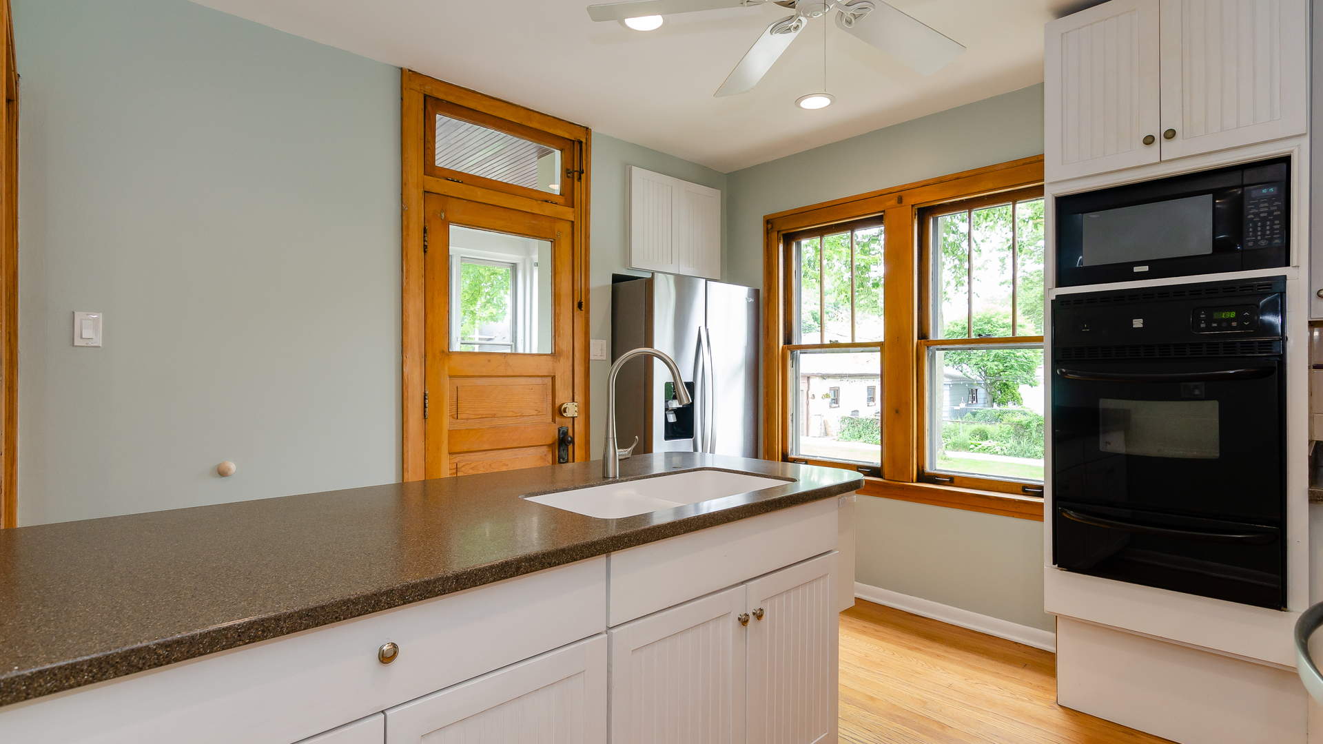Super sunny, classic Oak Park charmer!! You will be surprised by the spacious rooms and natural light throughout this home. It also features tons of beautiful natural woodwork and built-ins. The entry, opens to a large living room with gas log fireplace and built in cabinetry, The dining room is flooded with light and also features a built-in buffet. A swinging door leads to the modernized, white cabinet kitchen, featuring an island with seating and a huge pantry.  A charming powder room is tucked away on this level and there is an enclosed porch right off the kitchen that serves as a great summer hang out and is large enough to double as a mud room.