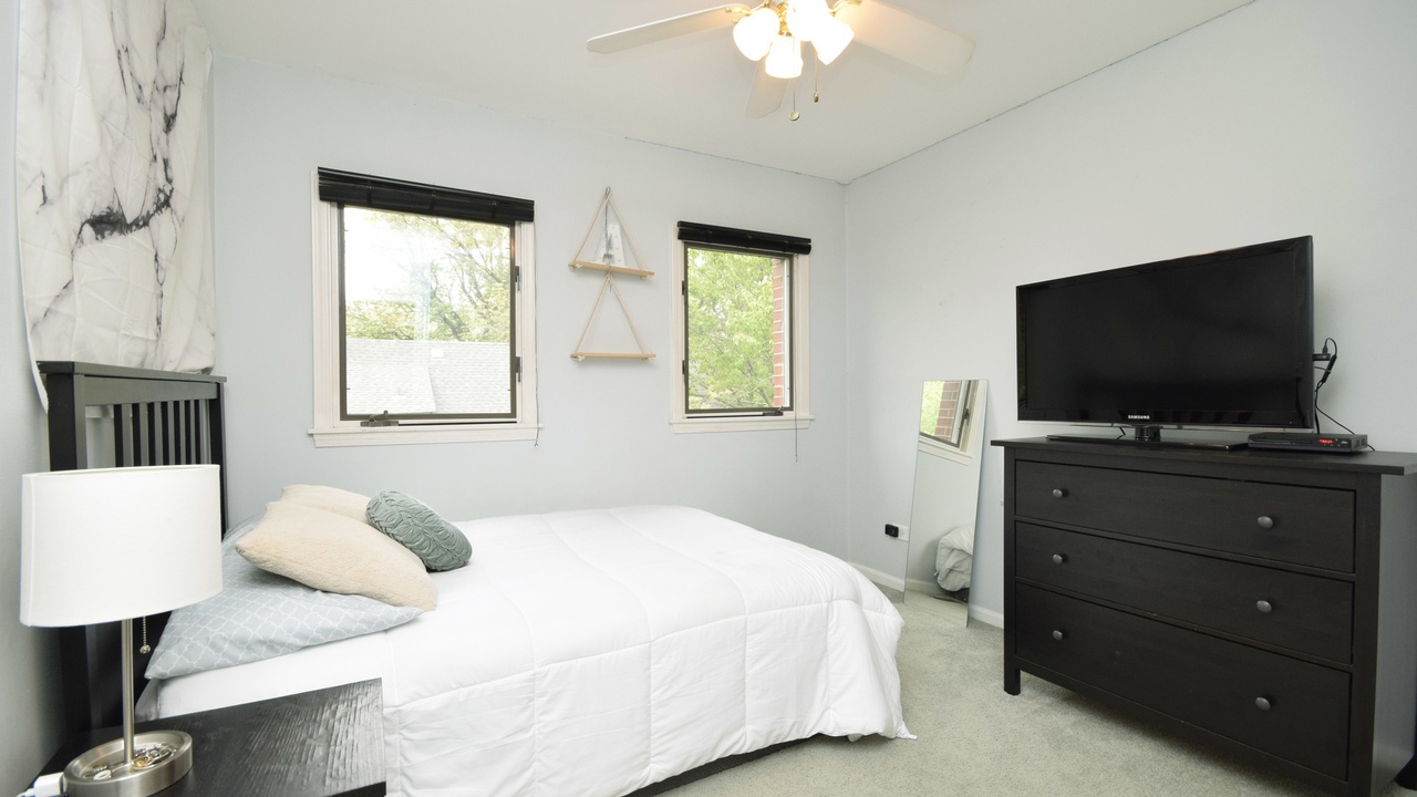 Rarely available townhome with over 2100 square feet on 3 levels! This south-facing unit is filled with sunlight and overlooks a lushly landscaped courtyard. The unit features a private outdoor patio and balcony. First floor features a family room, mudroom and 2-car garage with storage. Second floor features a gorgeous open-concept living and dining space with large windows and a wood burning fireplace. Kitchen is large and features tons of cabinets, granite countertops, stainless appliances, pantry and balcony. Third floor features 3 generous bedrooms and 2 full baths–both full baths have been stylishly updated. The primary bath features a separate tub and shower with double vanity. This complex of townhouses and condos is extremely well maintained and is situated in a quiet corner of River Forest, with easy access to 290, CTA Blue line, Metra, Downtown Forest Park shops and restaurants.