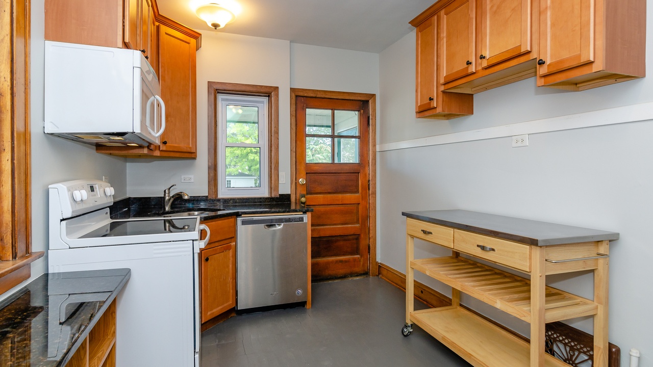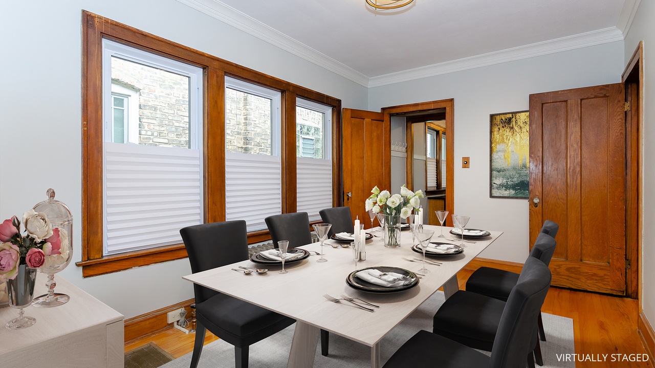 Super cute bungalow, with TONS of updates PLUS a HUGE yard! This charming brick home features a spacious living room with a decorative fireplace, separate dining room, 2 bedrooms, full bathroom, updated kitchen, and screened porch. The basement is full and has one finished room that is perfect for a home office. The walk-up attic is full of possibilities and great for storage. Backyard features a paver patio for outdoor dining, beautiful landscaping, raised garden beds, and great space for kids and pets to run! 2 car garage rounds it out. Great location in North Forest Park, walking distance to downtown FP shops and restaurants, CTA Blue Line, Metra, Parks, schools, and more!! All New windows in 2021, New Roof in 2019, Boiler and Furnace replaced in 2013, AC added in 2014, Hot water heater replaced in 2016. The kitchen was renovated in 2014. **Taxes do not reflect any exemptions.